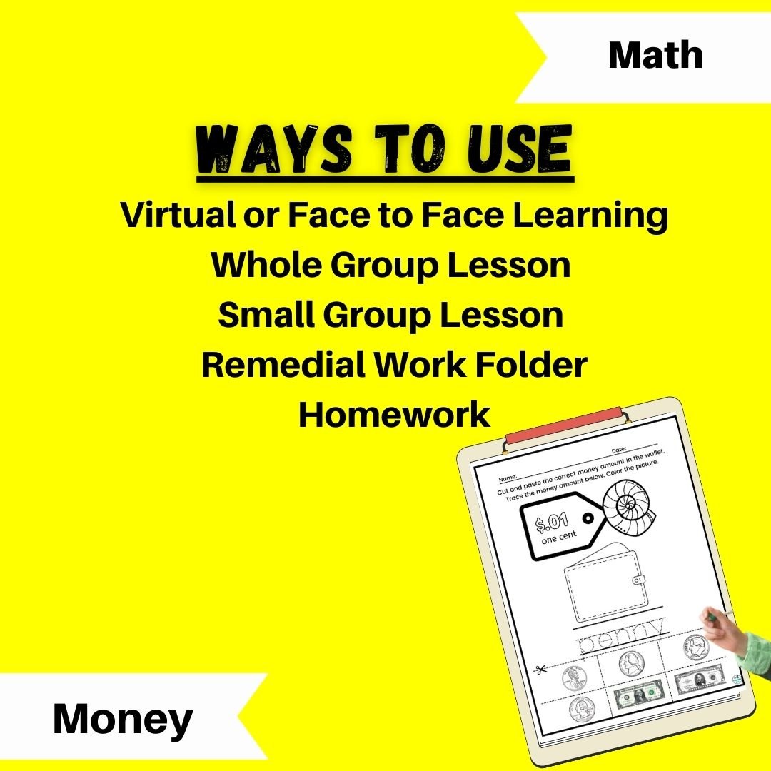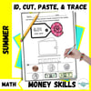 Dive into Summer Fun with Summer Money Math! Reinforce money skills with your students in identifying, counting, and matching money! If your students need help identifying and counting money to make purchases, these Summer Money Math worksheets will make learning fun! It's important for students to learn functional money skills such as counting and identifying money, which are essential for successful daily living. These worksheets will help students match number values to written values, practice writing the written value, and cut and paste the correct currency to the item. The worksheets focus on coins (.01-.25) and one dollar at a time from $1.00-$10.00. These are excellent small-group activities, whole-group activities, or in individual work packets. You can even use these as homework! These worksheets are in both color and black and white.